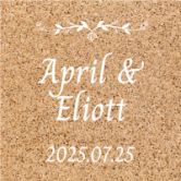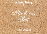 È anche possibile selezionare un modello di adesivo personalizzato su misura con uno sfondo che imita il legno o il sughero, che si adatterà perfettamente all'arredamento rustico del ricevimento.